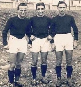 L’ultimo gol in biancorosso prima di darsi alla macchia. Il partigiano Carlo Carini detto l’inglese, medaglia d’argento al valor militare, indossò la casacca del Piacenza in serie C per l’annata 1943-44. Nell’eccezionale fotografia qui pubblicata, siamo al termine della partita Carpi-Piacenza, dove Carini aveva segnato giocando da mediano. La partita si era chiusa con un 2-2. Era il 31 gennaio del 1943. Carini al centro della foto, alla sua sinistra il terzino Franco Torregiani di Rivergaro e alla sua destra il mediano Santino Vaccari di Piacenza.